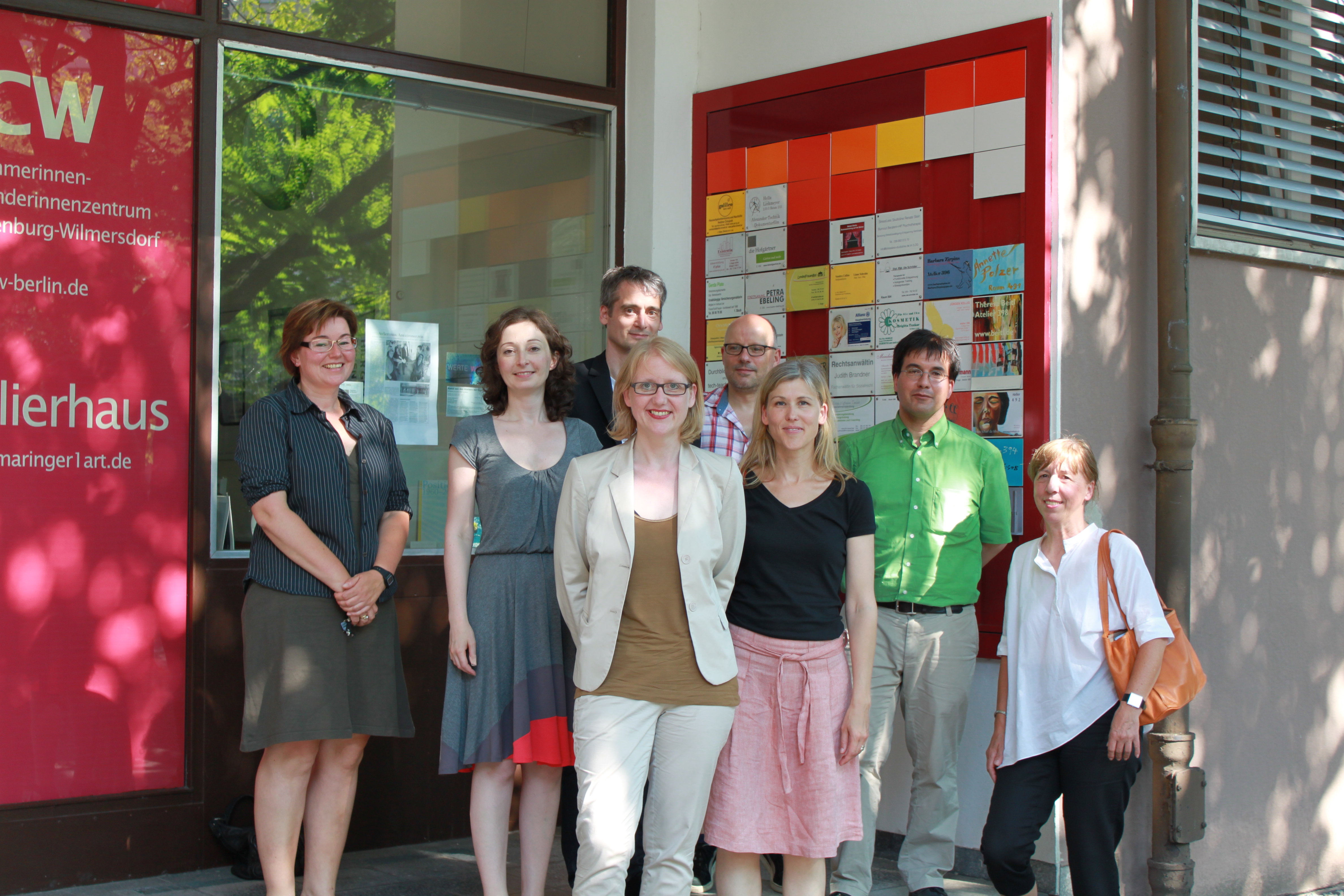 Am 20. Juni besuchte Ramona Pop das Unternehmerinnen und Gründerinnen Zentrum Charlottenburg-Wilmersdorf (UCW) in der Sigmaringer Straße (Foto: v. l.: Judith Brandner, Ramona Pop, Lisa Paus, Larissa Boehning, Alexander Kaas Elias, Christine Rabe, Christoph Wapler, Ansgar Gusy).