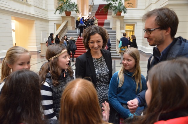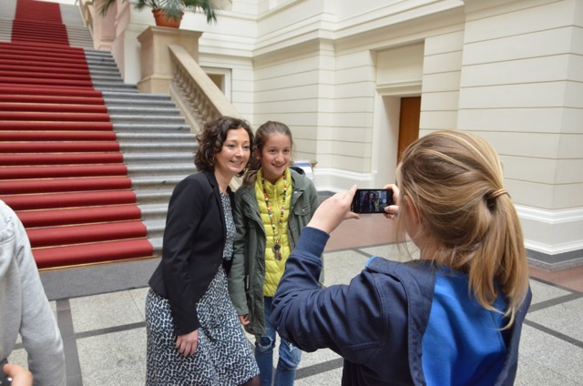 Aber viel zu erfahren gab es für die Mädchen nicht nur im Gespräch mit Ramona Pop, sondern auch im Parlament. Nach einer Führung durch das Abgeordnetenhaus freuten sich die Schülerinnen, auf der Besuchertribüne eine Plenarsitzung live verfolgen zu können.