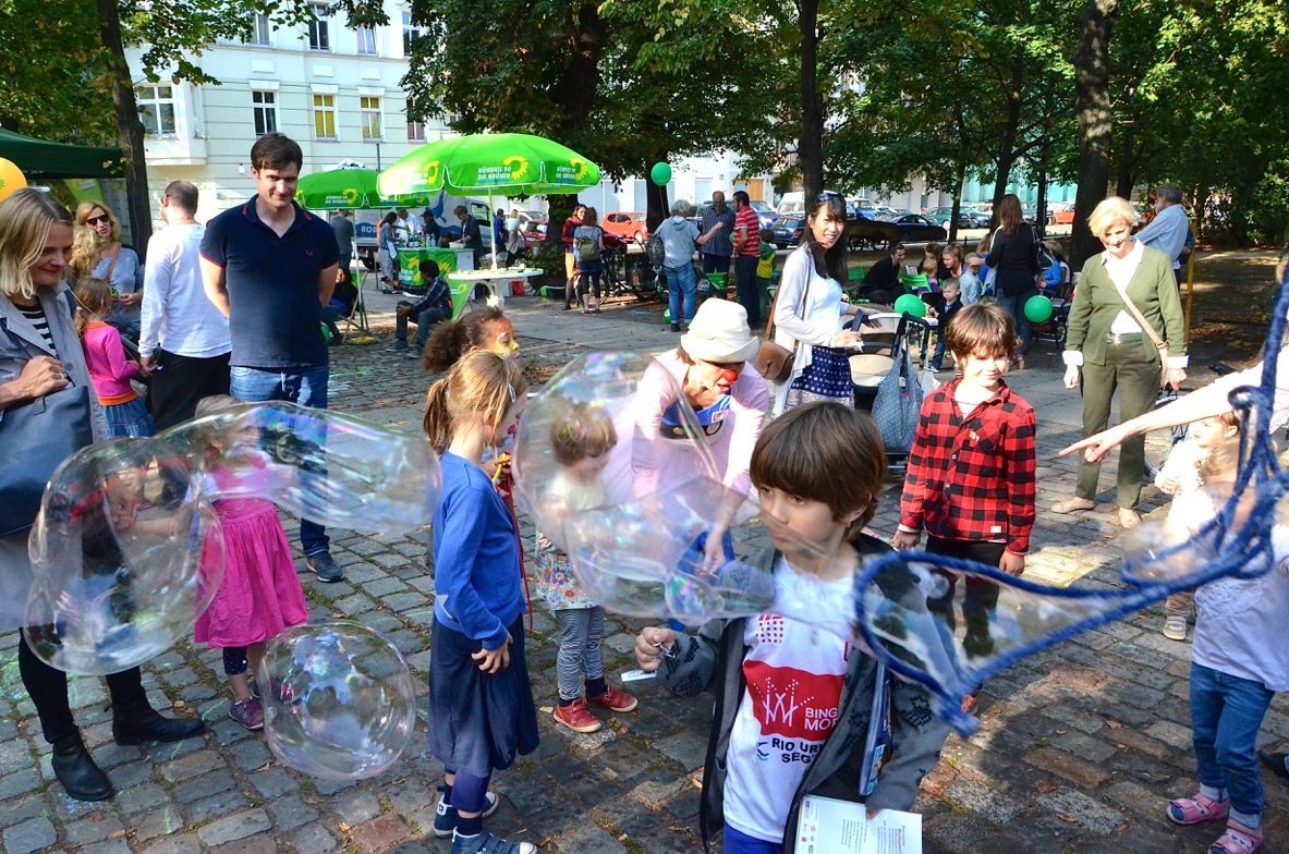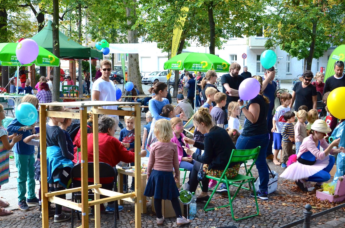 Auch in diesem Jahr spielte das Wetter mit: Bei Sonnenschein und milden Temperaturen lud der Kreisverband von Bündnis 90/Die Grünen Mitte am 12.09. 2015 zum grünen Kinderfest. Schon wie im letzten Jahr fand es im Wahlkreis von Ramona Pop auf dem Arkonaplatz statt.
