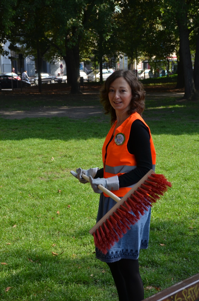 Ramona_WirBerlin Am 14. September nahm Ramona Pop teil an der Aktion „wir machen sauber“, die im Rahmen der berlinweiten Aktion „Mach mit für ein schönes Berlin“ stattfand. Sie half im Monbijoupark tatkräftig mit für mehr Lebens- und Aufenthaltsqualität für alle Parkbesuchenden. Ramona war am Sonnabend eine von vielen Engagierten, die zu Schürze, Schippe und Besen griffen. Die organisierende Initiative „wirBERLIN“ bietet allen kleineren und größeren Kiez- und Stadtinitiativen eine Plattform und die Möglichkeit, gemeinsam ein stärker wahrnehmbares Zeichen zu setzen und um das Bewusstsein der Berlinerinnen und Berliner auf das Thema Sauberkeit im öffentlichen Raum zu lenken. Im Monbijoupark mit dabei waren außerdem Özcan Mutlu, Abgeordneter und Direktkandidat, sowie Silke Gebel, ebenfalls Abgeordnete. Am Ende des Tages waren alle zufrieden mit ihrer Arbeit und gingen mit einem guten Gefühl ins Wochenende. Das lag wohl zum einen an den Endorphinen, die automatisch ausgeschüttet werden, wenn man sich gemeinnützig betätigt. Zum anderen lag es wohl auch an der ohnehin ausgelassenen Stimmung und den lustigen Gesprächen.